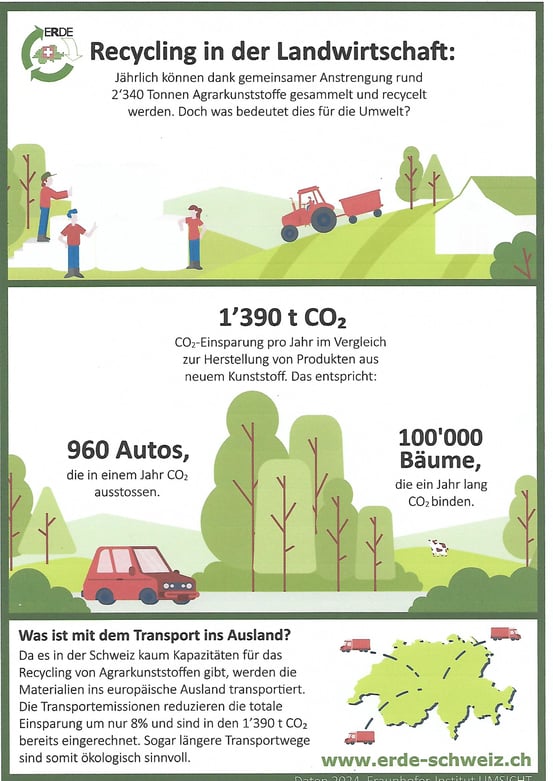 In Absprache können bei uns kleinere Mengen Folie, sowie Schnüre und Netze in Sammelsäcken gegen eine Transportgebühr abgegeben werden. Die Recyclinggebühr wird durch Erde Schweiz rückerstattet.